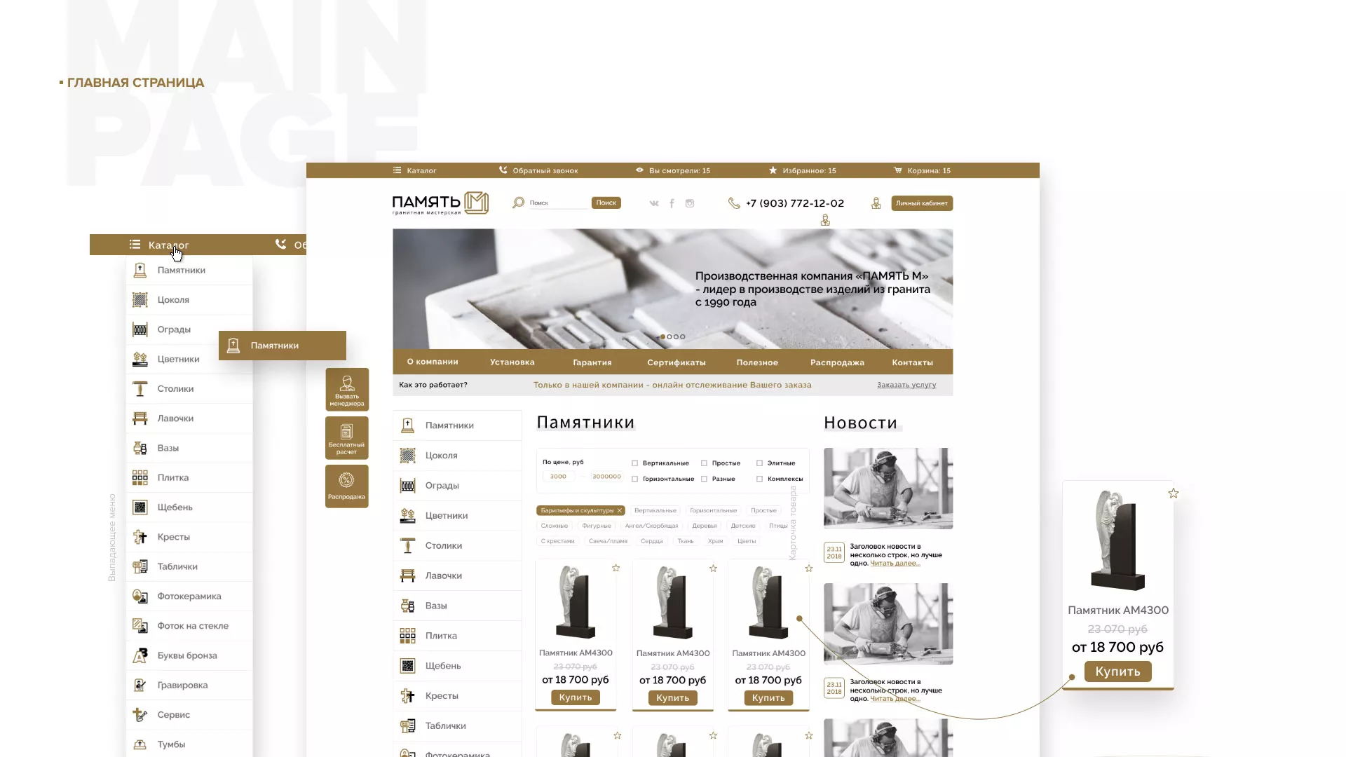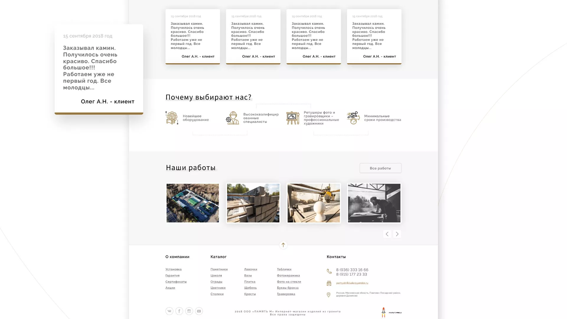 Разработка логотипа, фирменного стиля и сайта в Клинцах для компании «Память-М». Компания является предприятием по изготовлению всех видов надгробных сооружений: памятников, цоколей на могилу, оградок, столов, лавочек, ваз, балясин, плитки, мемориальных комплексов. Компании «Память-М» изготавливает все виды мемориальных изделий на собственном производстве в Клинцах.